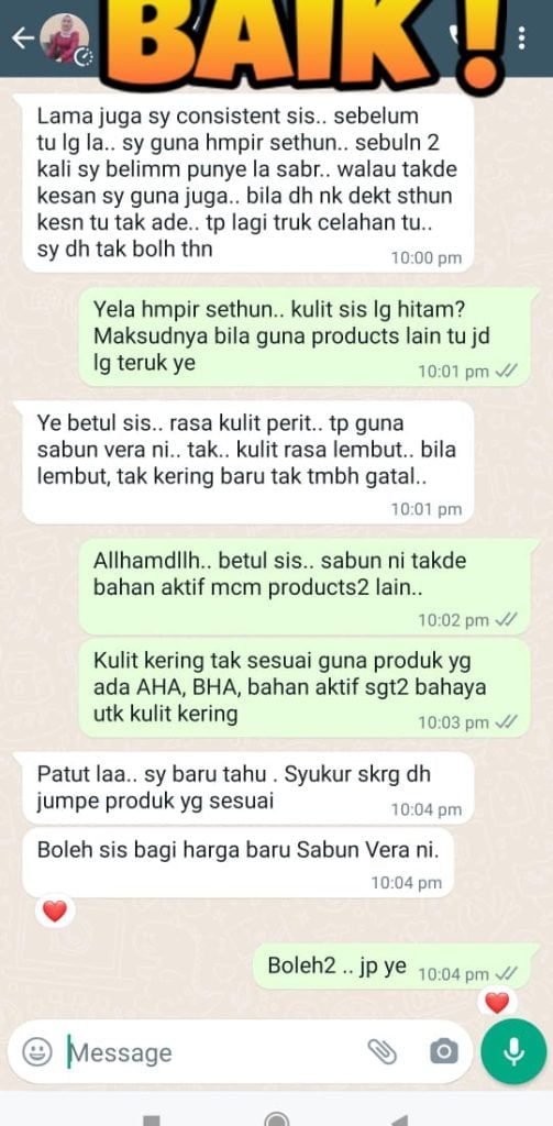 Jika digunakan 3 kali sehari. 1 sabun vera bertahan selama 2 minggu